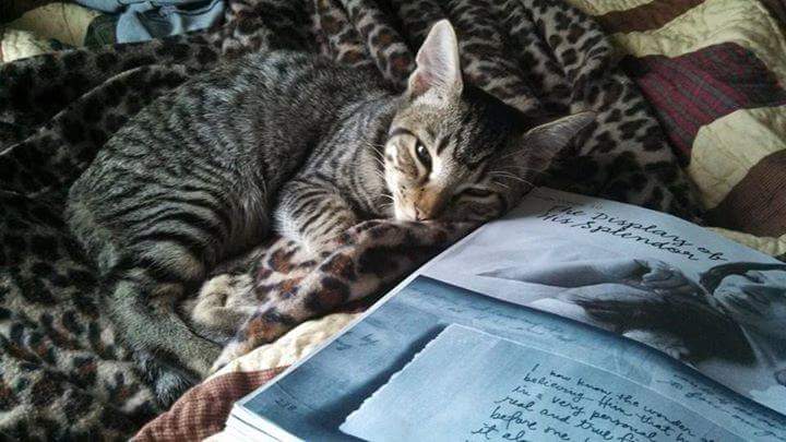 My first cat, Tony ( short for Antonio Banderas), came home from Richmond Animal League at five months old and died a little over a year later of a freak blood clot that left both of his back legs suddenly paralyzed. The doctor said he would have a long, hard road ahead of him if he survived, and so I chose to not let him suffer. It broke my heart to let him go. I would never find a cat that played fetch like he did, or one with a crazy obsession for Q-tips. He was such a lovebug, and I still miss him.