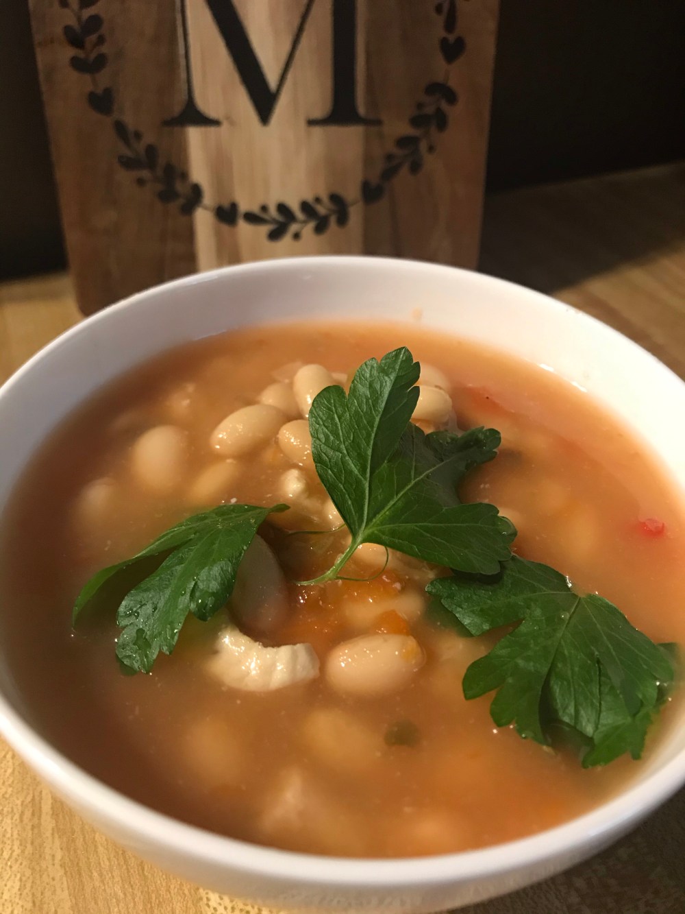 I found a recipe for White Chicken Chili in a book I borrowed from Hoopla (free digital library app! Check it out! And that’s a library pun š³). I took a screenshot of the ingredients and instructions but forgot the name of the recipe. I started calling it “Salsa Chicken” because, well, it has chicken and salsa (along with white beans and chicken broth) but when I added the liquid it was much more than I’d anticipated. Huh. My chili is normally thick and hearty but this was definitely…soup.