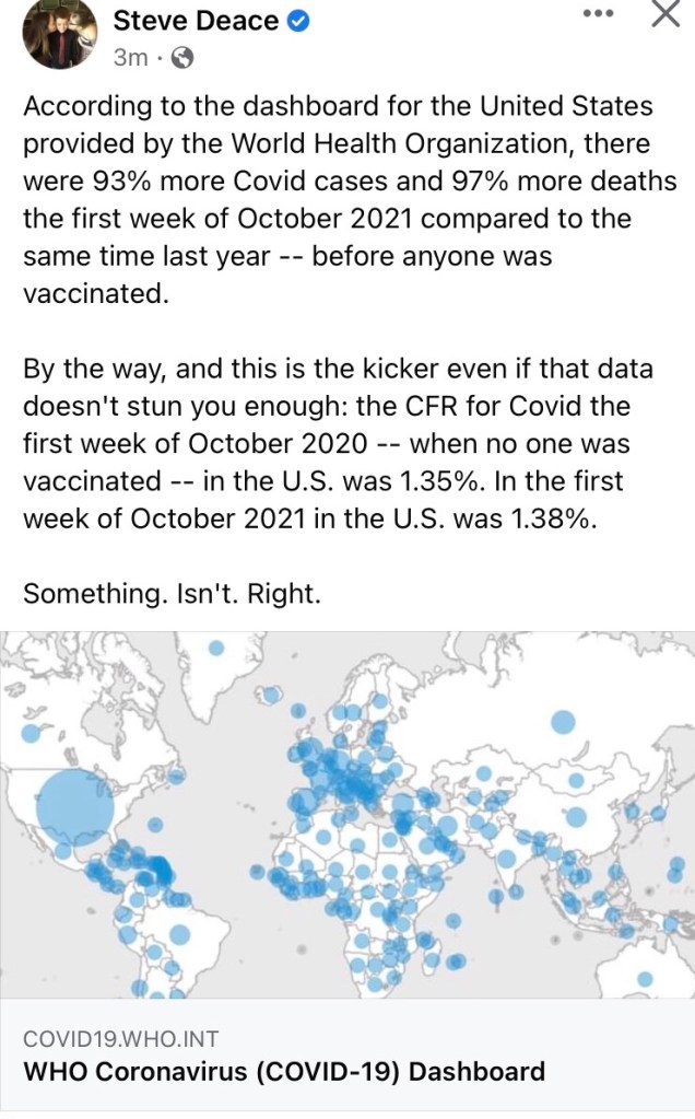 And why is our government acting like anyone who hasn’t gotten the shot is an infectious ticking time bomb? And forcing hardworking Americans to choose between their deeply held convictions/reservations and their livelihoods? I have my theories. But I will save those for another day.