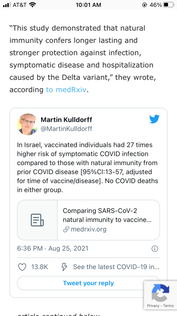 Now let’s talk about mandates. Most of us are aware that vaxxed or unvaxxed, we can all contract and transmit Covid. Also, for those who have already had Covid, getting a vaccine on top of your natural immunity (27 times better than vax immunity) is a ridiculous requirement.